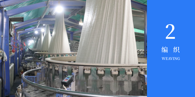 首先將原料送入拉絲機器混合,用高溫把原料拉伸成膜,刀片切割成不同寬度的絲。然后將絲放入織布機(分為水織機和圓織機,圖中為圓織機)中編織成布,織布的同時進行熱切,避免產品形成毛邊。然后將編織好的織布經過覆膜機做成客戶想要的顏色,最后布匹送入高溫熱合機進行拼接,最終制成客戶所需要的不同尺寸的篷布。我們工廠擁有先進技術的四米覆膜機,可以雙面覆蓋客戶所需要的顏料,更好的減少損耗、降低成本,使得客戶的利益放大化。同時也減少了篷布的拼接次數,篷布的使用壽命加長,質量可靠。